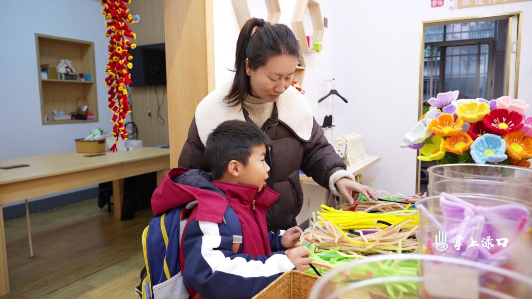 各班级教室内,黑板上的欢迎标语温馨醒目,崭新的课本整齐摆放,处处洋溢着新学期的新气象。在学校非遗五坊,学生们创作的扎染、布艺、绒花等作品集中展出,精美的作品引得师生和家长纷纷驻足欣赏。