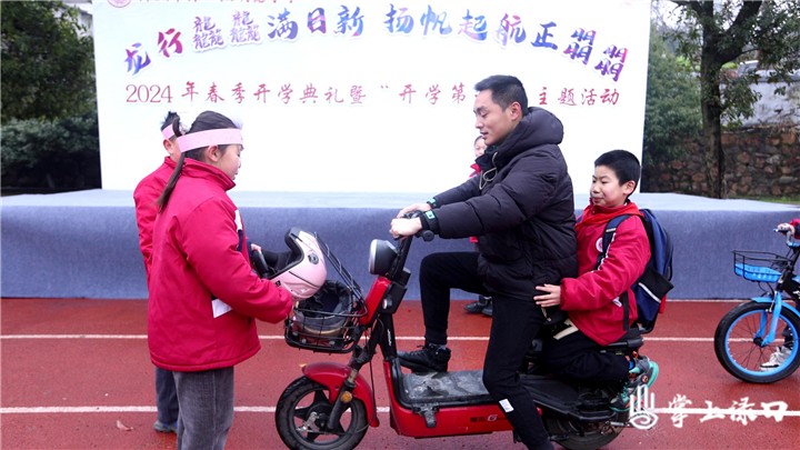 上午10点,阵阵笑声从明德小学操场上传来,一群平均年龄不到10岁的小学生上演了一幕精彩的情景剧:爸爸骑电动车送孩子上学,为赶时间忘带头盔被“交警”拦截,小男孩佑佑独自骑自行车上路,被“交警”逮住……这场孩子们精心准备的交通安全情景剧《上学路上》,将“未满12岁不得在公共道路上骑自行车”“骑乘电动车要佩戴安全头盔”等交通安全知识直观演绎,让大家印象深刻。