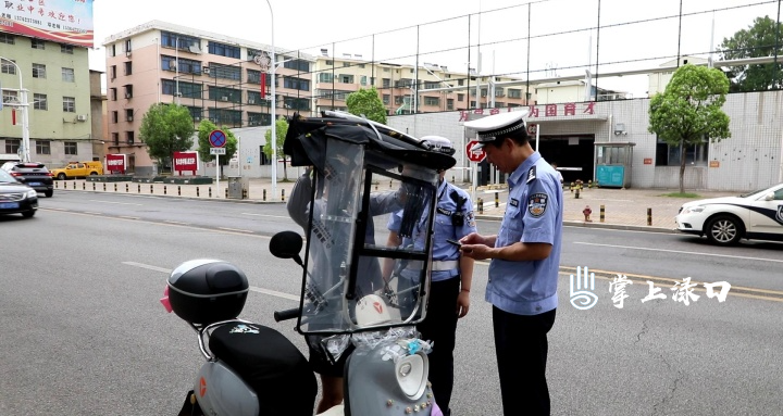 8月22日上午9点,执法人员在城区南江南路路段设立卡点,对骑乘摩托车、电动车加装遮阳伞(篷)进行依法拆除并现场收缴和销毁;对未按照规定佩戴安全头盔的摩托车、电动车骑乘人员采取“教育+整示+处罚”的方式,耐心讲解佩戴头盔的重要保护作用及未按规定佩戴安全头盔的危害性,强化群众安全出行意识。