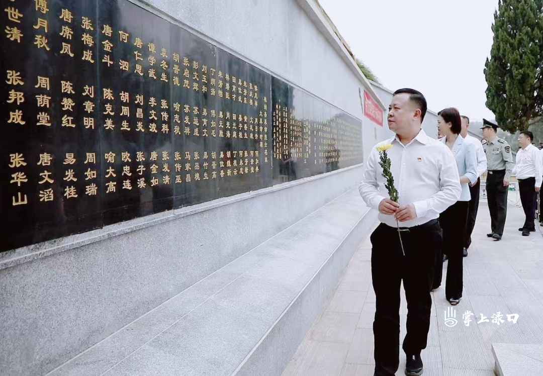 上午9点30,在渌口镇关王村,关王烈士陵园的苍松翠柏间,革命烈士纪念碑巍然屹立。伴随着中华人民共和国国歌的奏响,向革命烈士敬献花篮仪式正式开始。