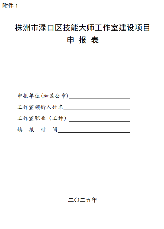 1.《株洲市技能大师工作室建设项目申报表》《2025年度株洲市渌口区技能大师工作室建设项目情况一览表》(见附件);
