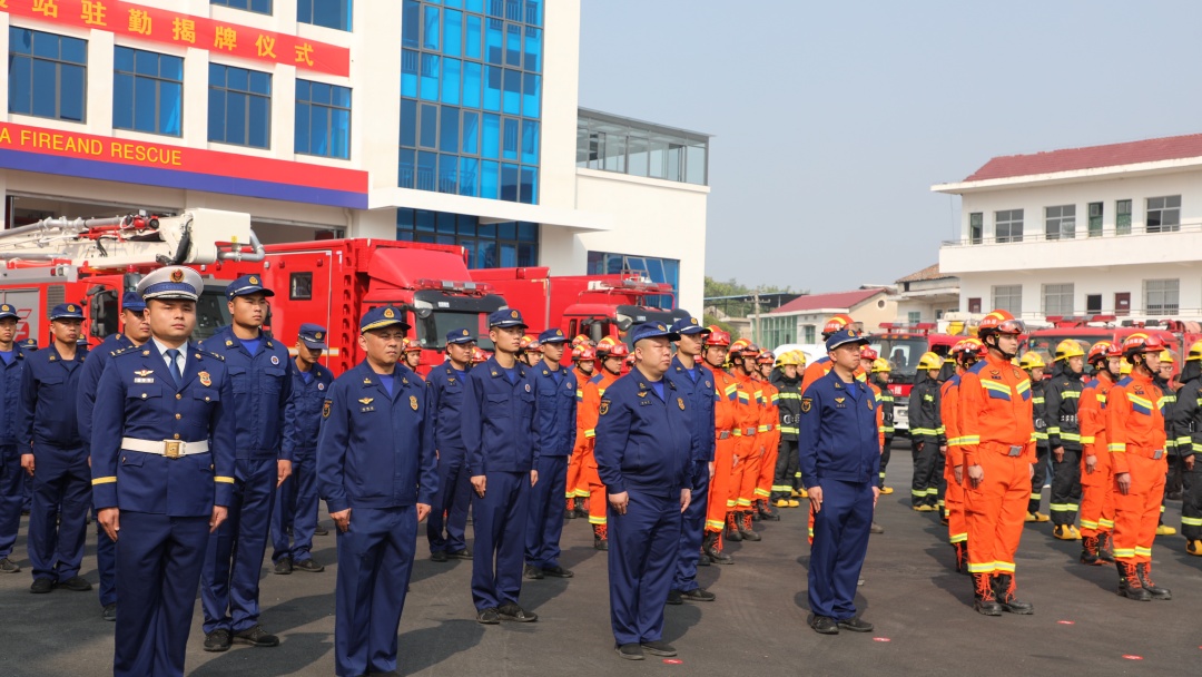 10月28日,株洲市渌口区南洲消防救援站举行驻勤揭牌仪式,区委书记李晓彤,市消防救援支队党委书记、政治委员谷小波出席。