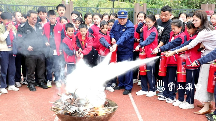 在第34个全国消防日来临之际,11月7日上午,渌口区消防救援大队在市二中青龙湾小学开展消防宣传活动,以沉浸式体验、互动式教学,为师生们送上一堂生动的消防安全“实践课”。