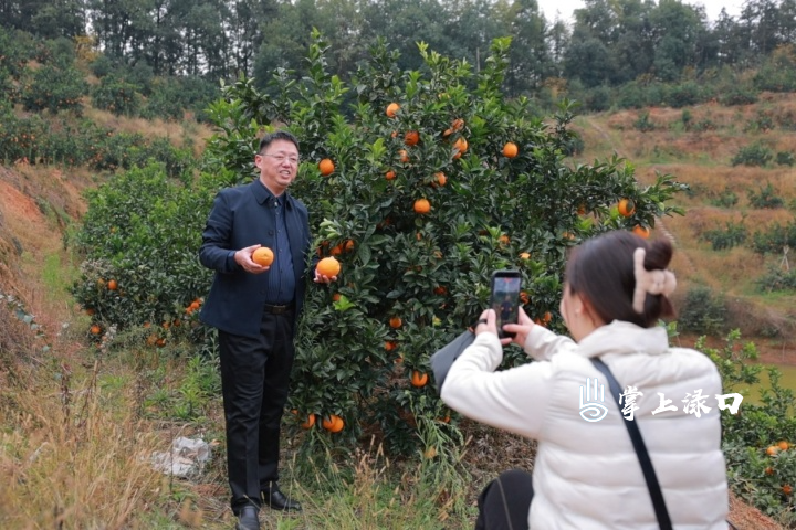 “大家看,这颗橙子皮薄肉厚,汁水特别足,咬一口酸甜多汁,都是纯天然生态种植的!” 网红达人 “渌口区刘家本味馆” 浩哥手持刚采摘的橙子,对着镜头热情介绍。